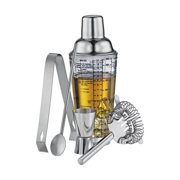 Shake aftenen op med lækre drinks. Du behøver ikke tage ud på dyre cocktailbarer for at få lækre drinks, dem kan du sagtens lave herhjemme. Barsættet indeholder en cocktailske, en si, en måler, en tang til is, og så selvfølgelig en cocktailshaker, så du har alle redskaber til at lave gode cocktails. På shaker-koppen kan du finde opskrifter til inspiration.