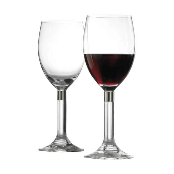 Rødvinsglasset indgår i Elegance-serien, som er kendetegnet ved en diskret, men karakteristisk stålmanchet omkring glassets kraftige stilk.
