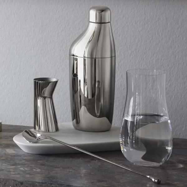 Med Sky barsættet får du den bedst mulige start, når der skal mikses og shakes til festens drinks. Sættet kommer i et tidløst og enkelt design med organiske former, der er med til at skabe en flot og indbydende hjemmebar. Et design, der vil få lige så meget ros, som dine drinks.