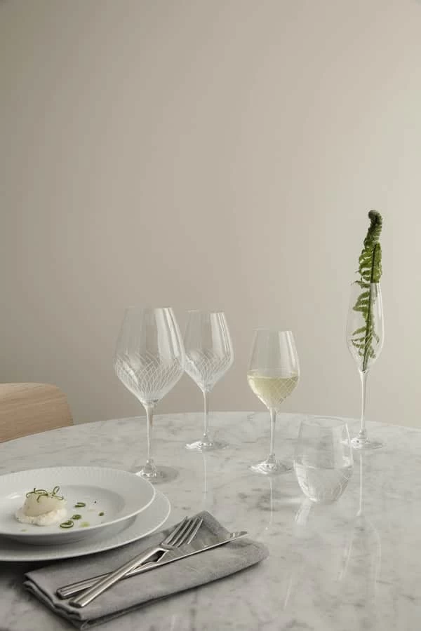Vil du imponere dine gæster med en smuk borddækning, så skal du blot dække op med disse Holmegaard Cabernet Lines rødsvinsglas. De flotte linjer på glasset skaber en smuk optisk elegance.
