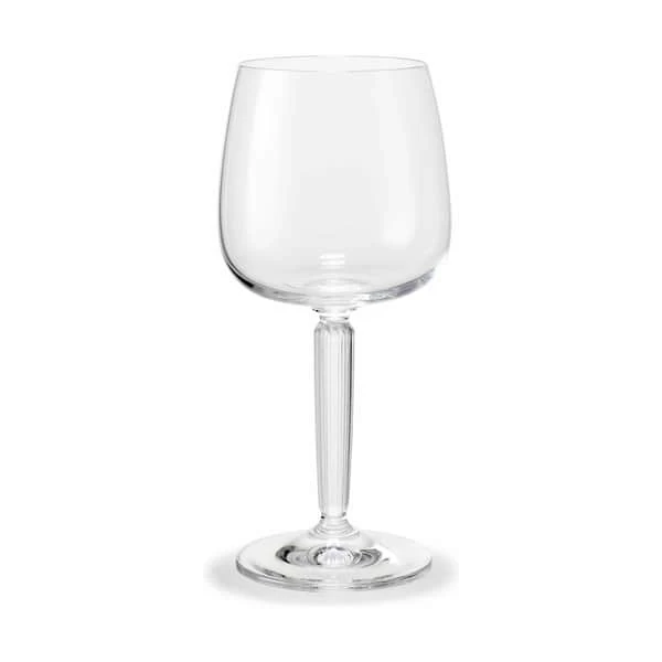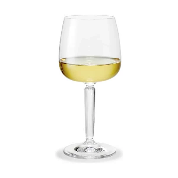 Proportionerne på de smukke Hammershøi hvidvinsglas er både balancerede og klassiske, og vinglassenes formsprog, i samspil med de ikoniske riller, understreger seriens på én gang klassiske og moderne udtryk, der er evig aktuelt på bordet. Rillerne nærmest rejser sig op og bærer den runde bowle foroven. Læg også mærke til detaljerne, hvor stilken ’knækker ind’ både foroven og forneden, der er en tydelig reference til den designtradition, der kendetegner formgivningen af de populære Hammershøi-vaser.