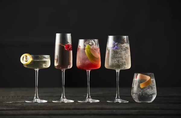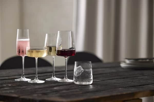 Zero glasserien består af rød- og hvidvinsglas, to slags champagneglas og en tumbler, der er god til vand eller drinks.